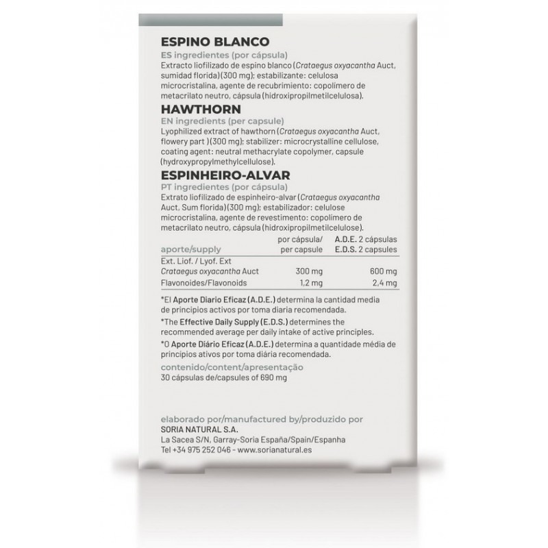 Cada cápsula de Soria Natural Espino Blanco contiene: