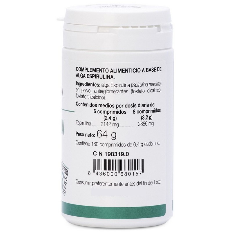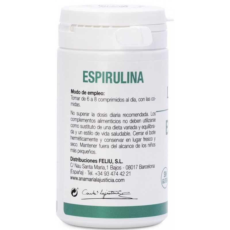 ANA MARIA LAJUSTICIA Espirulina es un complemento alimenticio vegetal de alto valor nutricional, elaborado a base de alga espirulina, un superalimento conocido por su elevado contenido en proteínas, vitaminas y minerales. Esta microalga, rica en clorofila y nutrientes esenciales, ha sido ampliamente utilizada por su capacidad para reforzar la alimentación diaria y potenciar el bienestar general del organismo. Además, su perfil nutricional completo la convierte en una excelente opción para personas con dietas vegetarianas o veganas.