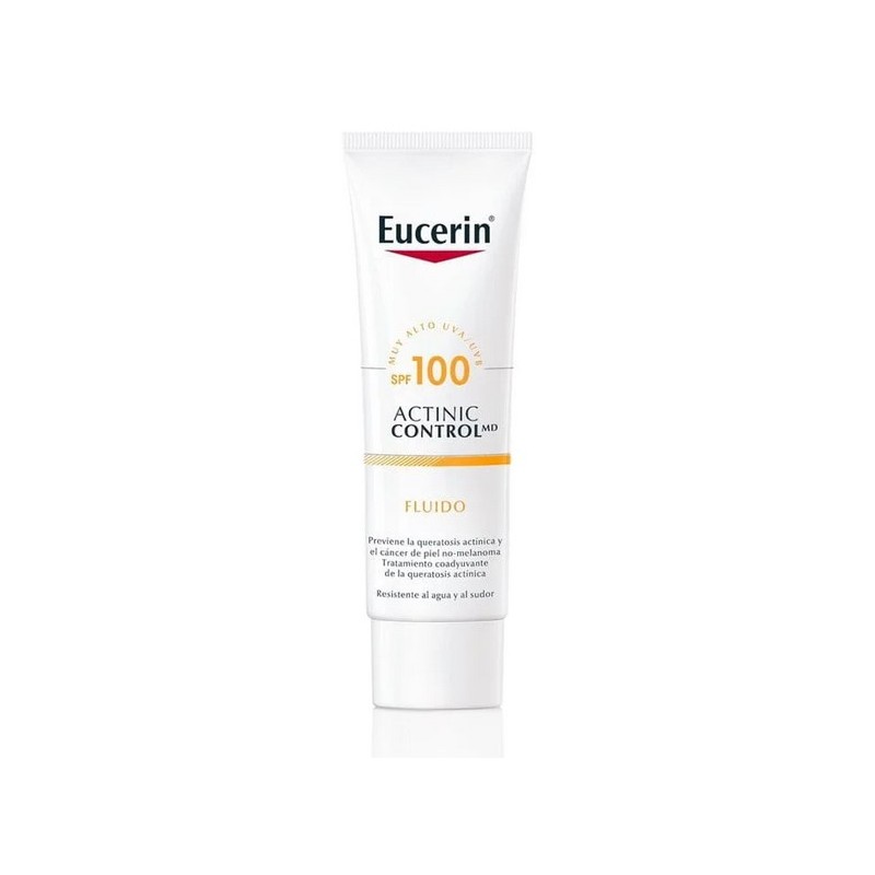 Eucerin Actinic Control Fluido FPS 100 es un producto sanitario de alta eficacia especialmente formulado para la prevención de la queratosis actínica y el cáncer de piel no-melanoma. Gracias a su filtro solar de amplio espectro FPS 100, ofrece una protección excepcional frente a los rayos UVB y UVA, principales responsables del daño celular inducido por el sol. Su textura fluida, ligera y de rápida absorción lo convierte en una opción ideal para el uso diario, tanto en entornos urbanos como en actividades al aire libre.