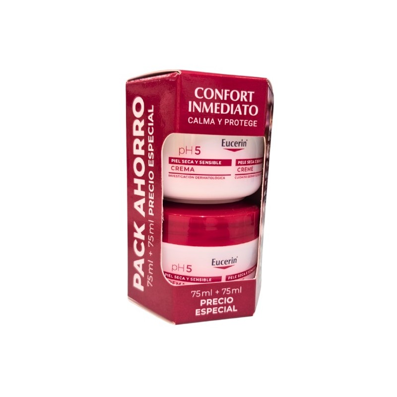 Eucerin pH5 Crema Piel Sensible y Seca es la solución ideal para quienes buscan hidratación intensa, protección y bienestarfórmula calmante y pH equilibrado garantiza una piel suave, protegida y flexible, ayudando a mantener el equilibrio natural de la piel y previniendo la sequedad y tirantez. Un cuidado completo para mantener la piel saludable día tras día.