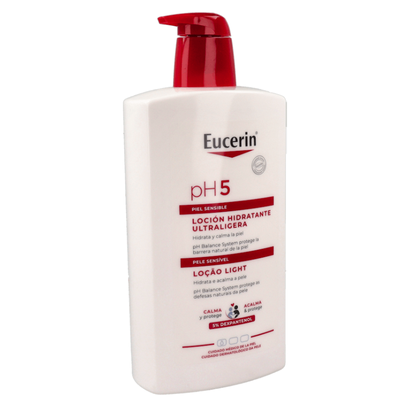 Eucerin pH5 Loción Hidratante Ultraligera es una loción corporal de uso diario especialmente formulada para hidratar intensamente la piel sensible sin dejar sensación grasa.
