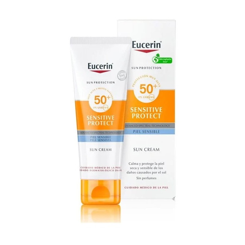 Eucerin Sun Face Sensitive Protect Cream FPS 50+ es mucho más que un protector solar: es un tratamiento dermocosmético avanzado que protege, repara y calma la piel sensible. Su tecnología de protección múltiple, junto a ingredientes antioxidantes y reparadores, la convierten en la opción ideal para cuidar la piel seca y delicada durante todo el año. Disfruta del sol con tranquilidad y con la confianza de una marca líder en dermocosmética como Eucerin.