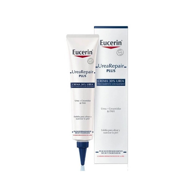 Eucerin UreaRepair Tratamiento Localizado 30% Urea es un tratamiento intensivo para piel extremadamente seca. Con urea al 30%, ceramidas y factores naturales de hidratación, exfolia, suaviza y repara la barrera cutánea en zonas localizadas como codos, manos, pies y rodillas. Piel visiblemente más suave y flexible desde la primera semana de uso.