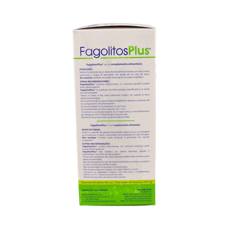 Cada sobre de FagolitosPlus contiene los siguientes ingredientes activos: