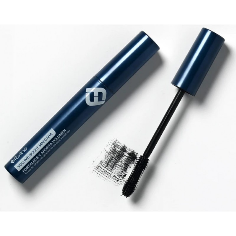 Farline Máscara de Pestañas Volumen Boost nutre, fortalece y aporta volumen intenso a las pestañas gracias a su fórmula con biotina, péptidos, vitamina E y vitamina B5. Color negro intenso, apta para ojos sensibles y con cepillo de alta precisión para una mirada más fuerte, larga y densa.