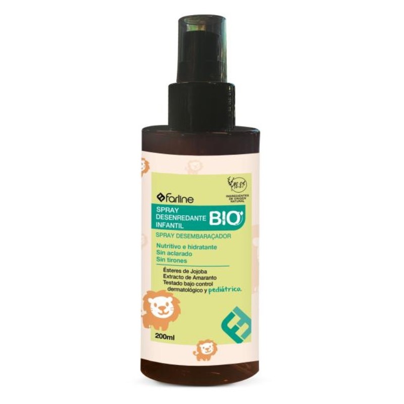 Farline Spray Desenredante Infantil BIO está compuesto por ingredientes cuidadosamente seleccionados, que nutren y cuidan el cabello de los niños: