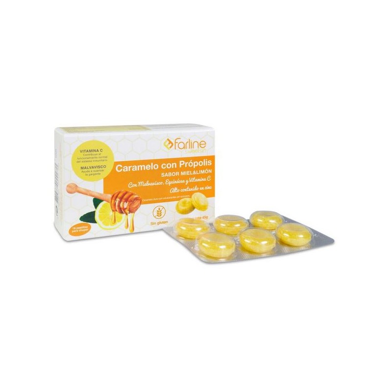 Farline Sweetsin Caramelos Própolis son caramelos duros sin azúcar con edulcorantes, sabor miel y limón, enriquecidos con própolis, vitamina C, malvavisco y equinácea. Su fórmula ha sido diseñada para suavizar la garganta y contribuir al funcionamiento normal del sistema inmunitario. Se presentan en un cómodo formato blíster para facilitar su consumo y conservación.