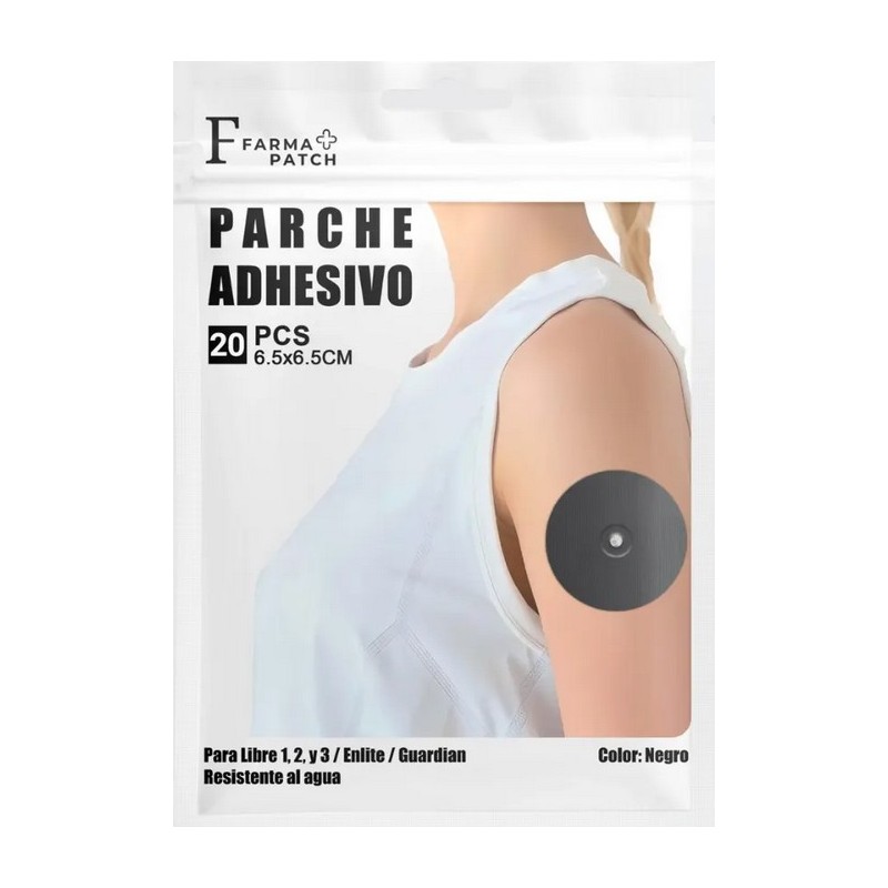 Farma Patch Parche Adhesivo Negro para Sensores de Glucosa está indicado para personas que utilizan sensores de glucosa y desean una protección extra con un diseño discreto y elegante. Su color negro lo convierte en una opción ideal para quienes prefieren un accesorio menos visible en actividades deportivas o en el día a día.
