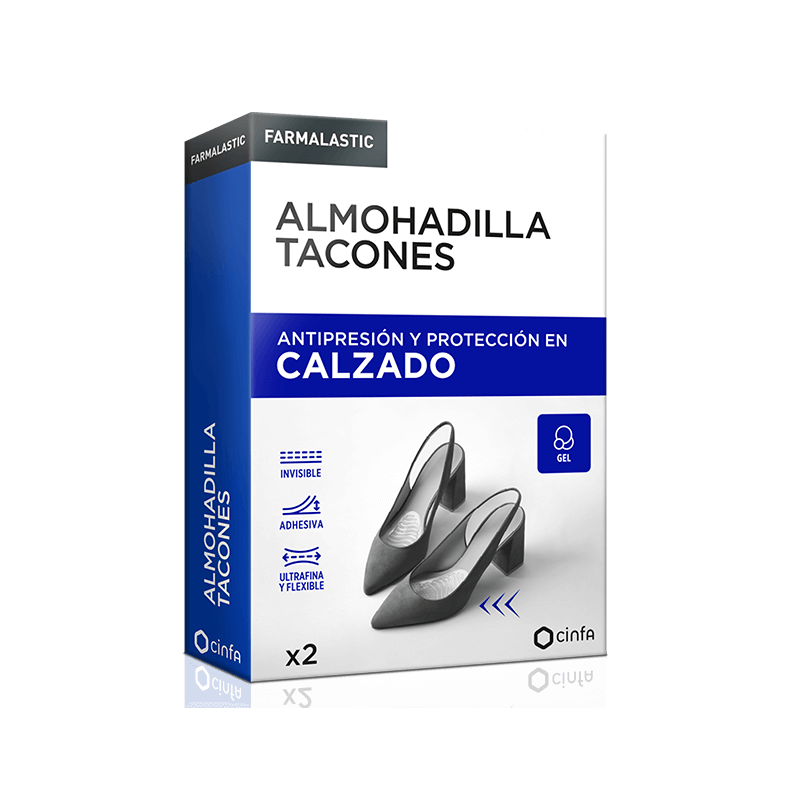 Farmalastic Almohadilla Tacones amortigua y protege el antepié, reduciendo la sobrecarga causada por el uso de tacones. Ultrafina, discreta y reutilizable, proporciona una agradable sensación de confort durante todo el día.