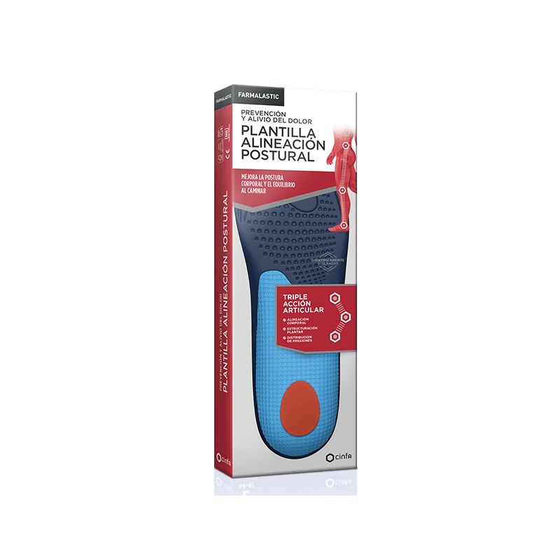 Farmalastic Plantilla Day Talla M ofrece alineación postural y soporte plantar para reducir sobrecargas en tobillo, rodilla y cadera. Confort diario y forro antibacteriano.