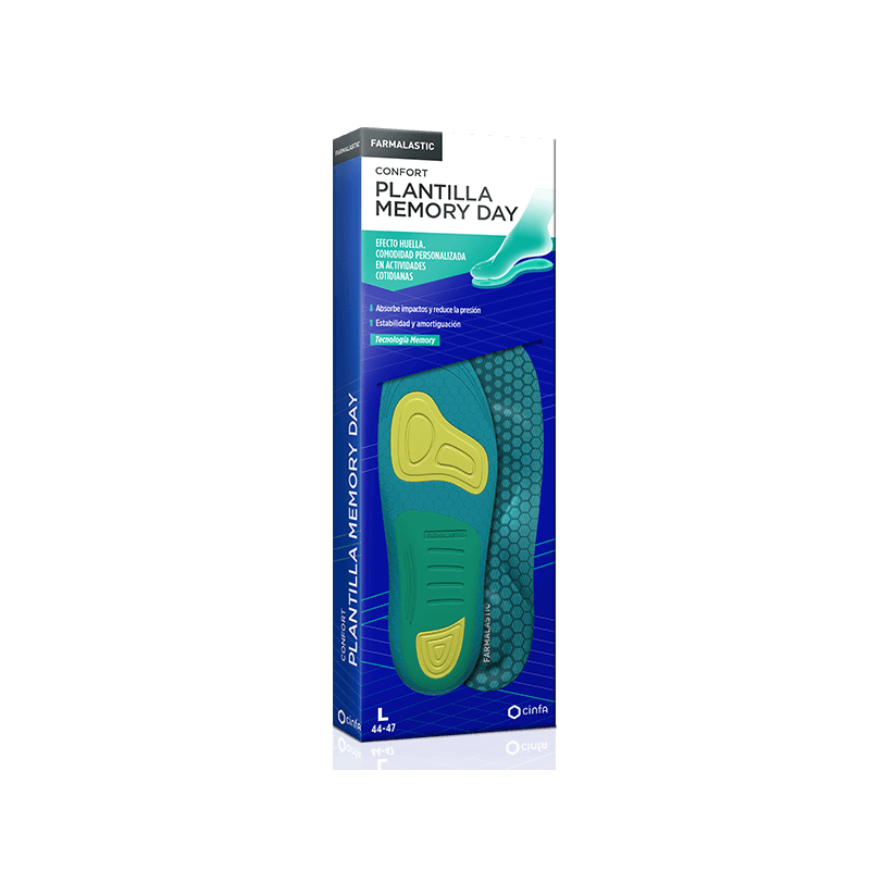 Farmalastic Plantilla Memory Day Talla M es una plantilla ergonómica con efecto memoria desarrollada para tallas 40-43. Gracias a su Tecnología MemoryFoam, se adapta progresivamente a la forma del pie proporcionando amortiguación inteligente y confort prolongado.