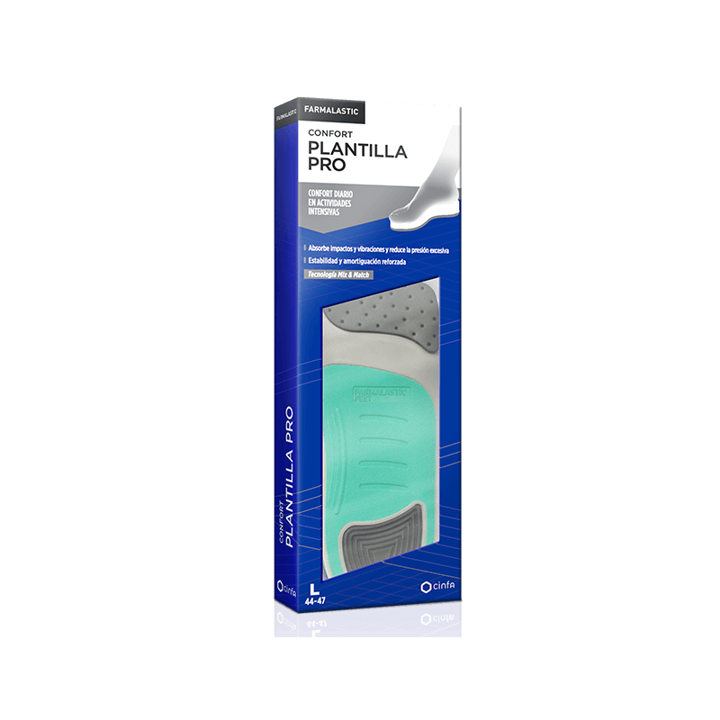 Farmalastic Plantilla PRO está indicada para personas que realizan actividades intensivas o que pasan muchas horas de pie y necesitan una plantilla de alto rendimiento que ayude a proteger los pies frente al impacto y la sobrecarga.