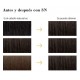 Realizar la mezcla del tinte con el revelador de color, hasta obtener una textura de gel. Aplicar inmediatamente sobre el cabello, dejando la raíz para el final. El tiempo de exposición es de 20-30 minutos dependiendo de la naturaleza del cabello. Pasado ese tiempo aclararemos el cabello con abundante agua, lavamos con champú, aclaramos y masajeamos con el bálsamo reestructurante durante dos minutos, volvemos a aclarar con agua, secamos y peinamos.