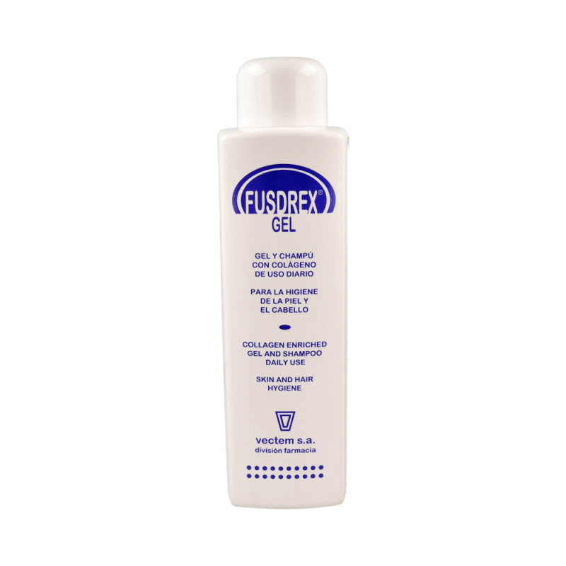 FUSDREX Gel es un gel y champú cremoso con colágeno diseñado para la higiene diaria de la piel y el cabello. Su fórmula exclusiva combina una textura suave y cremosa con propiedades nutritivas e hidratantes, lo que lo convierte en una solución ideal para quienes buscan un cuidado delicado y eficaz. Gracias a la presencia de colágeno, este producto no solo limpia profundamente, sino que también ayuda a mejorar la elasticidad, suavidad y aspecto general de la piel y el cabello.