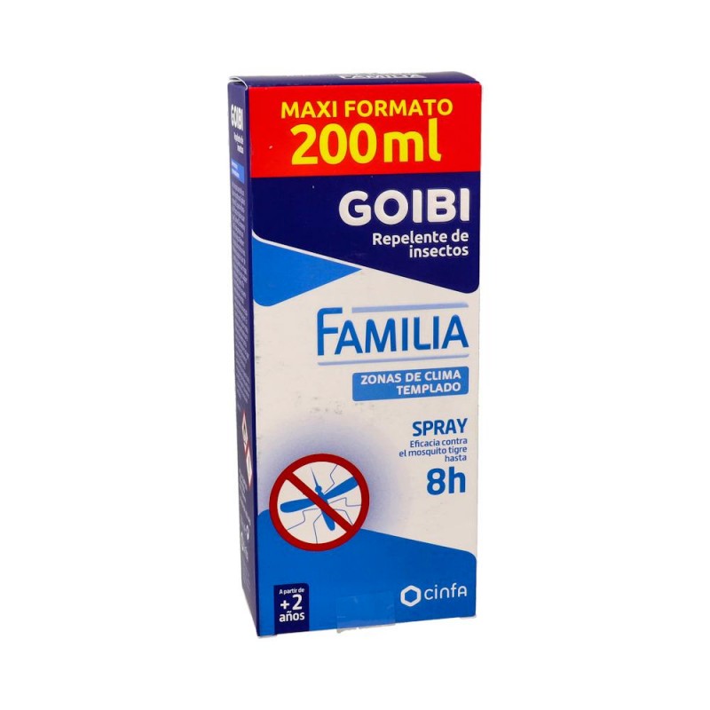 Goibi Familia Repelente de Insectos es un repelente de insectos en spray con DEET al 18% que ofrece una protección eficaz frente a mosquitos, incluidos los transmisores de enfermedades. Ideal para uso familiar, viajes y actividades al aire libre.