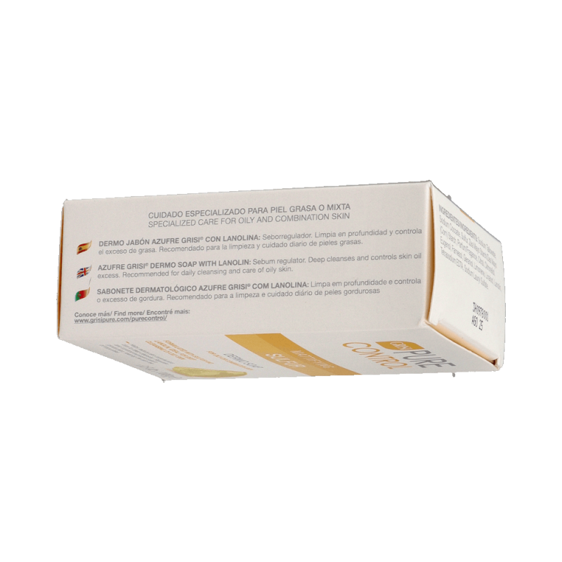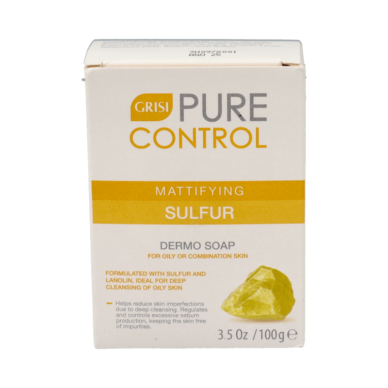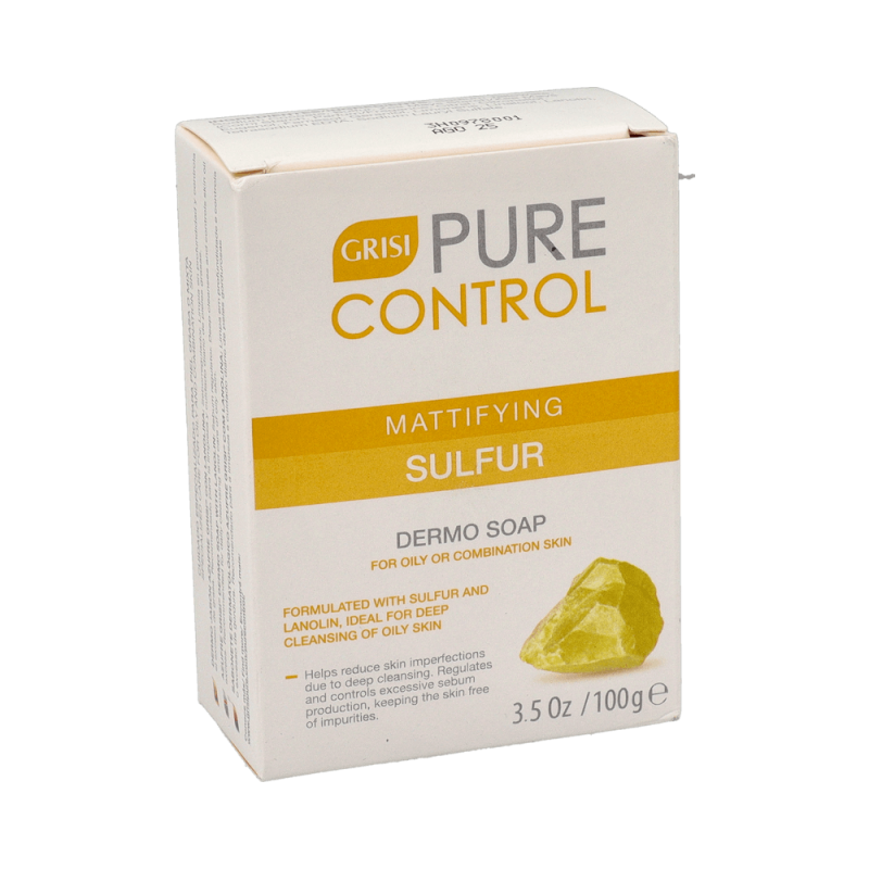 Grisi Pure Control Dermojabón de Azufre es un dermojabón seborregulador diseñado para limpiar profundamente la piel y controlar el exceso de grasa.