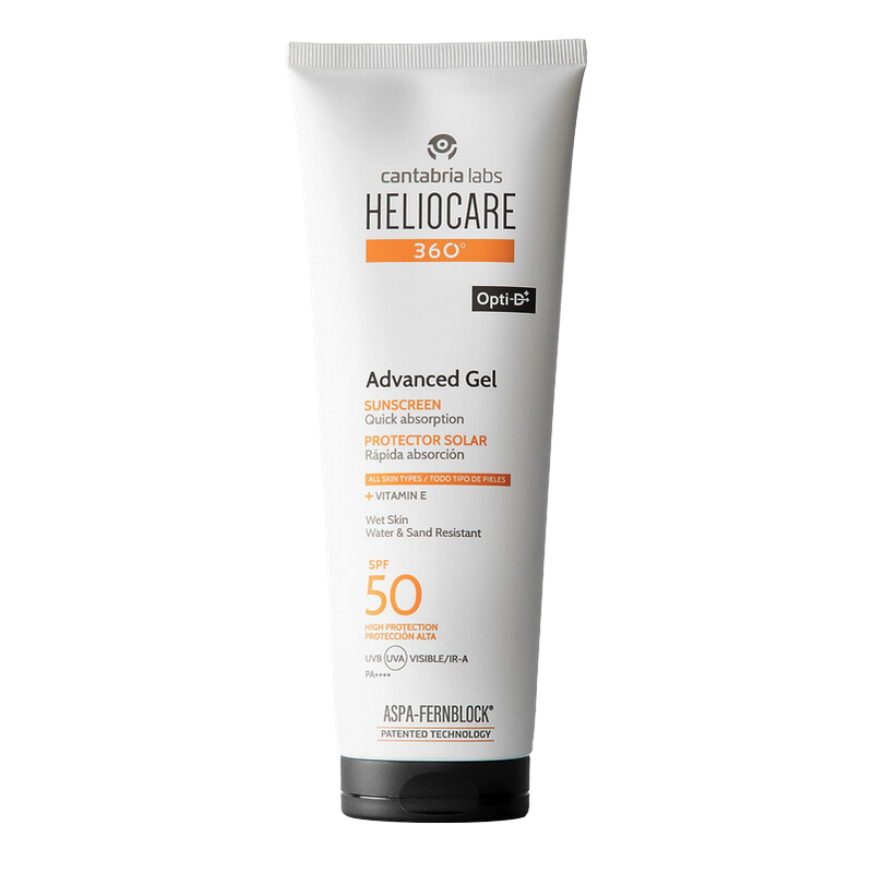 Heliocare 360º Advanced Gel es un fotoprotector avanzado de amplio espectro que protege contra rayos UVB, UVA, luz visible e infrarrojo. Su textura en gel fresco permite una fácil extensibilidad, haciéndolo apto para toda la familia. Formulado con la exclusiva tecnología ASPA-Fernblock®, ayuda a prevenir y reparar el daño solar, mejorando además la funcionalidad de la Vitamina D.
