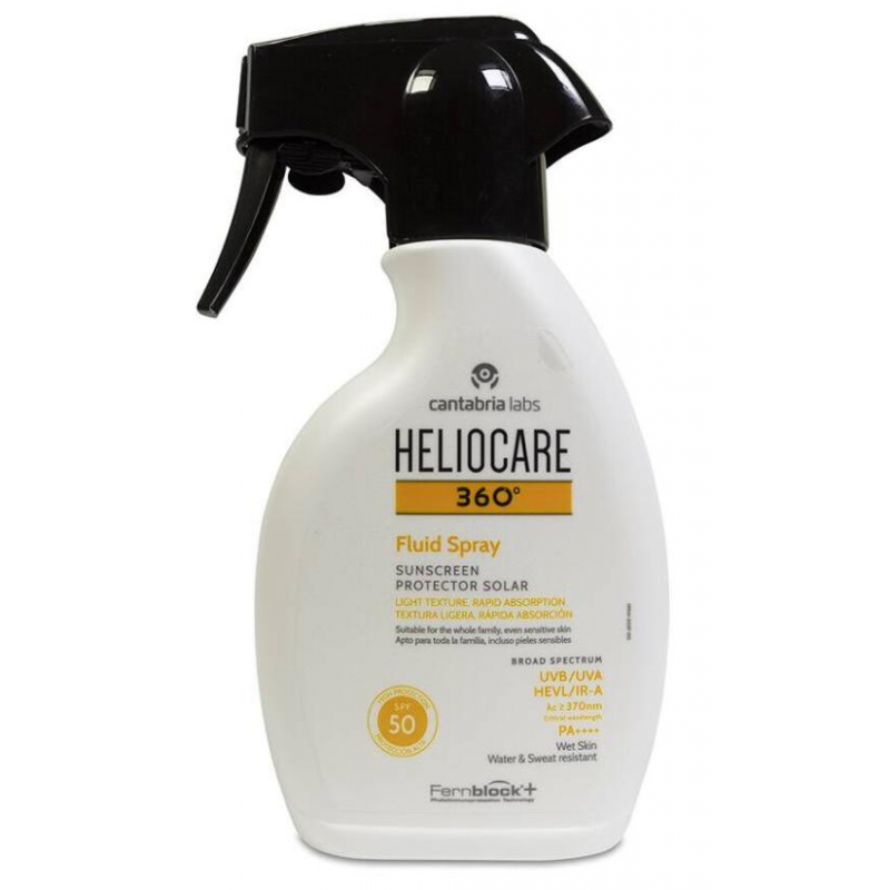 Heliocare 360º Fluid Spray SPF 50 es un spray fotoprotector de textura ligera y rápida absorción, diseñado para proporcionar una protección solar alta a toda la familia.