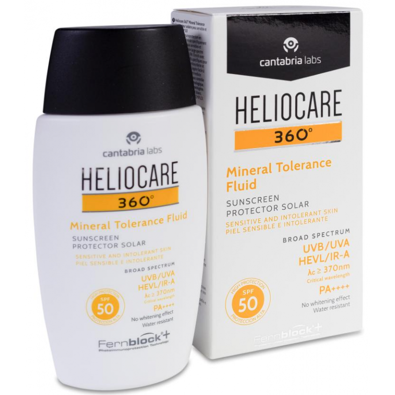 Heliocare 360º Mineral Tolerance Fluid SPF 50 es un fotoprotector avanzado con filtros 100% minerales.
