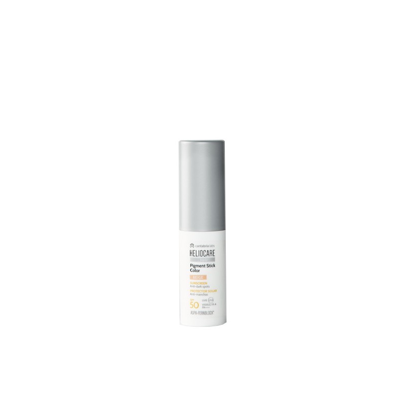 Heliocare 360º Pigment Stick SPF50 Beige es un avanzado fotoprotector facial con color en stick que combina protección solar muy alta SPF50 con acción antimanchas. Este producto multifunción previene, reduce y camufla las hiperpigmentaciones, proporcionando un acabado uniforme y natural.