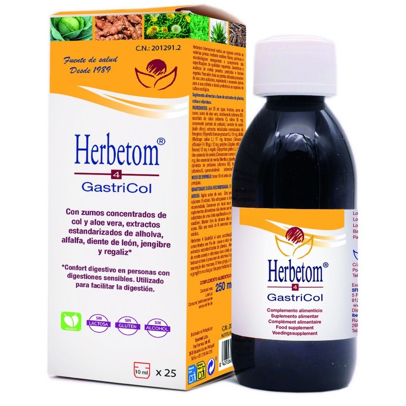 Herbetom 4 Gastricol Jarabe es un complemento alimenticio formulado a base de extractos naturales y vitaminas antioxidantes, especialmente diseñado para ofrecer confort digestivo a personas con digestiones sensibles o problemas gástricos recurrentes.