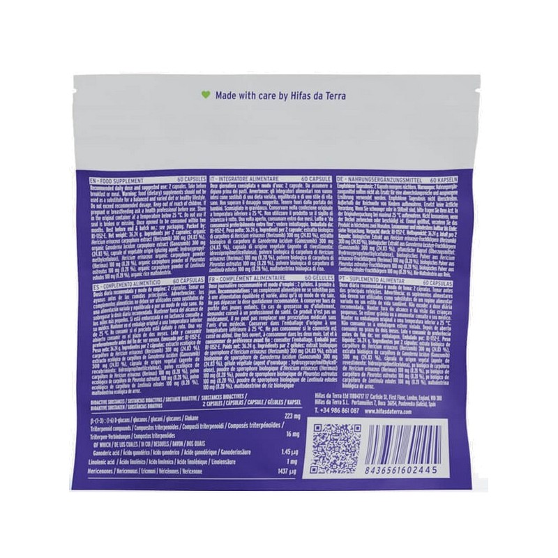 HIFAS da TERRA Hifas-Microbiota Doypack ha sido desarrollado siguiendo criterios de calidad, sostenibilidad y pureza, sin aditivos innecesarios, y producido en Europa para garantizar un suplemento de alto valor nutricional.