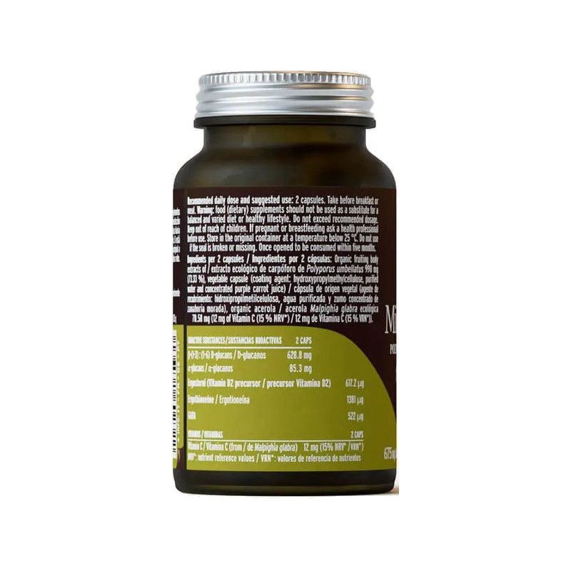 El Polyporus empleado procede de una cepa exclusiva de la colección de hongos de Hifas da Terra y se somete a un proceso de doble extracción a medida, desarrollado por su equipo de I+D, para garantizar un aporte óptimo de micronutrientes y compuestos bioactivos. El resultado es un suplemento vegano, producido en Europa y libre de alérgenos, pesticidas y aditivos innecesarios.
