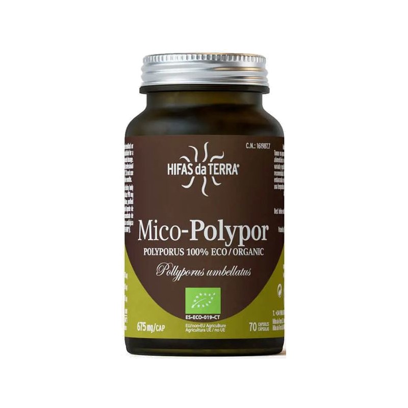 HIFAS da TERRA Mico-Polypor es un complemento alimenticio ecológico en cápsulas vegetales formulado a partir de extracto puro ecológico de Polyporus umbellatus y vitamina C natural procedente de la acerola. Se trata de una fórmula premium diseñada para ofrecer la máxima concentración y biodisponibilidad de los principios activos de este hongo funcional tradicionalmente utilizado en la Medicina Tradicional China (MTC).