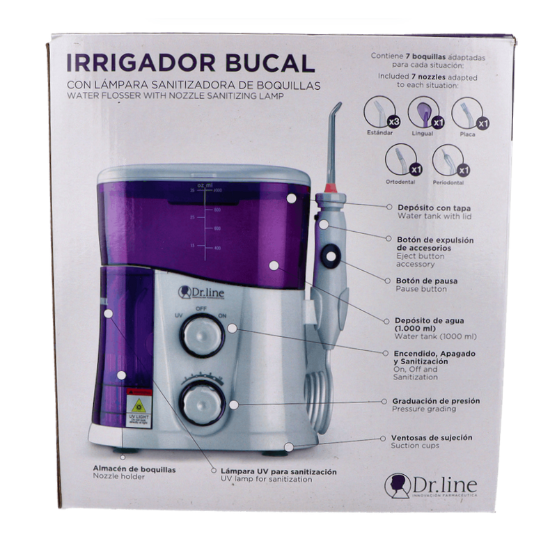 Irrigador Bucal Eléctrico DR.LINE es un dispositivo innovador diseñado para una limpieza bucal profunda y eficaz. Su tecnología avanzada permite limpiar entre los dientes y debajo de la línea de las encías, áreas donde el cepillo dental y el hilo tradicional no alcanzan. Además, cuenta con funciones especiales que masajean y estimulan las encías, mejorando la salud bucodental.