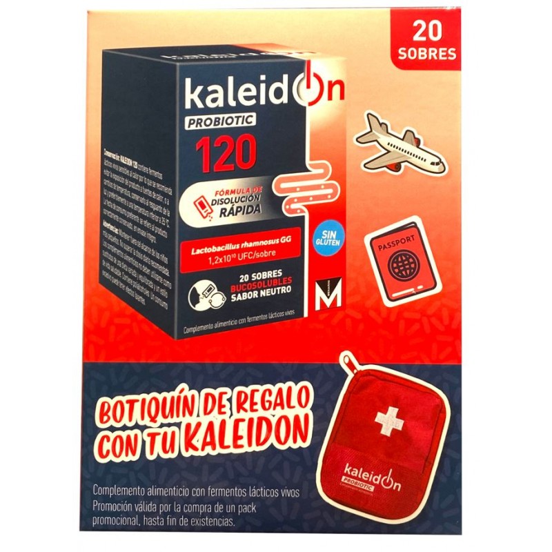 Kaleidon Probiotic 120 es un complemento alimenticio formulado con fermentos lácticos vivos de la cepa Lactobacillus rhamnosus GG (ATCC 53103), una de las más estudiadas y utilizadas a nivel mundial por sus beneficios sobre la salud intestinal. Su formato en disolución rápida con sabor neutro y sin gluten permite una ingesta cómoda y agradable, apta para personas con intolerancias alimentarias. Cada sobre proporciona una alta concentración de 10.000 millones (1×1010) de unidades formadoras de colonias (UFC), lo que garantiza su eficacia probiótica.