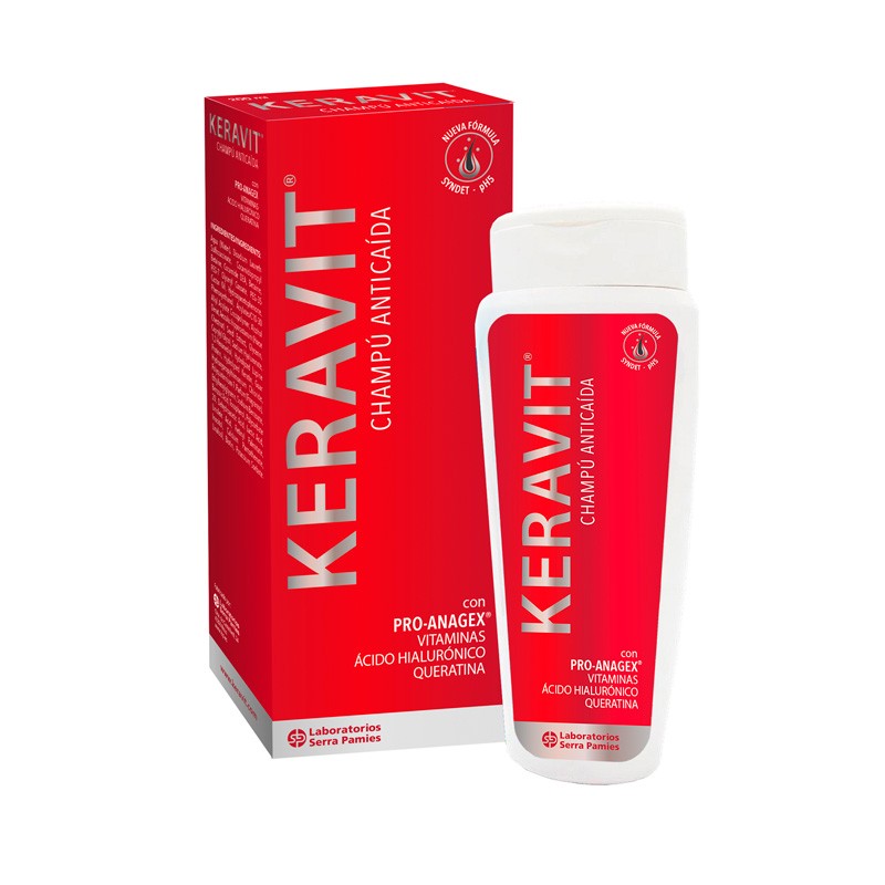 Keravit Champú es un champú anticaída con Pro-Anagex® que ayuda a prevenir la caída del cabello, aumentar la densidad capilar y fortalecer el cabello desde la raíz. Fórmula pH5, SYNDET, sin parabenos, sin sulfatos y sin siliconas. Cabello más fuerte, hidratado y revitalizado desde el primer uso.