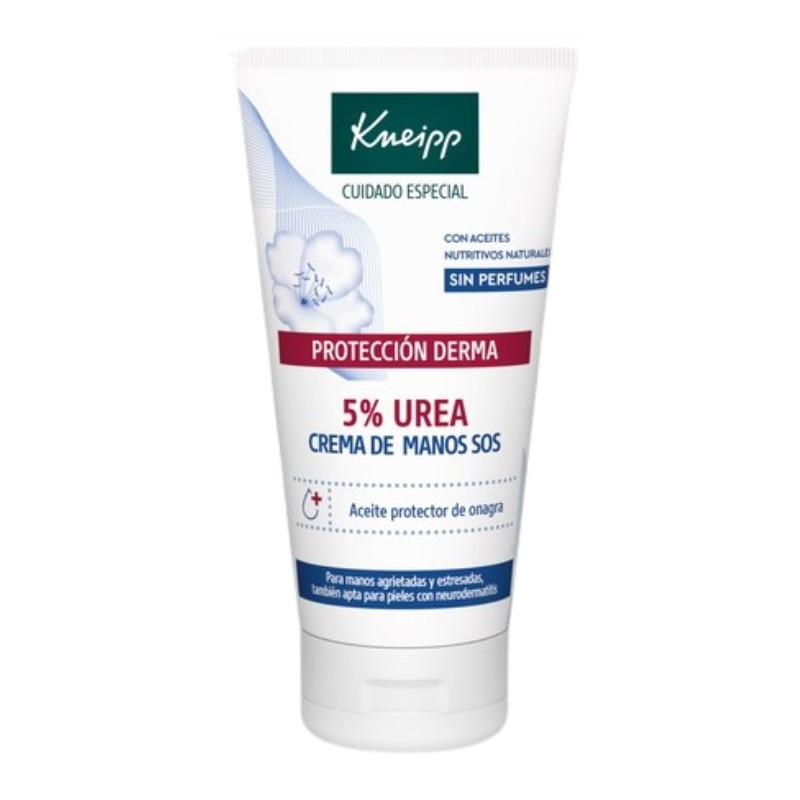 Kneipp Crema de Manos Protección Derma hidrata, repara y protege las manos agrietadas o estresadas gracias a su fórmula con Urea al 5% y aceite de onagra. Apta para pieles sensibles y con neurodermatitis, ofrece rápida absorción y un acabado no graso para un cuidado diario eficaz.