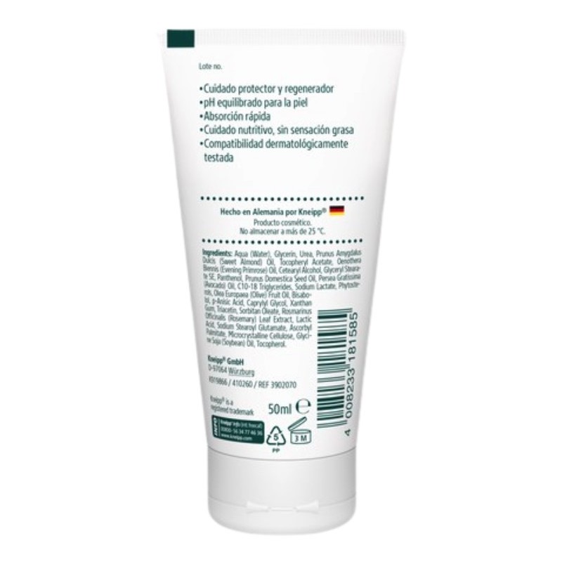 La fórmula de Kneipp Crema de Manos Protección Derma se basa en ingredientes hidratantes, nutritivos y protectores: