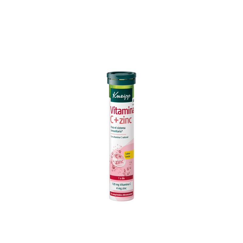 Kneipp Vitamina C + Zinc es un complemento alimenticio formulado con Vitamina C y Zinc, dos nutrientes esenciales que contribuyen al funcionamiento normal del sistema inmunitario.