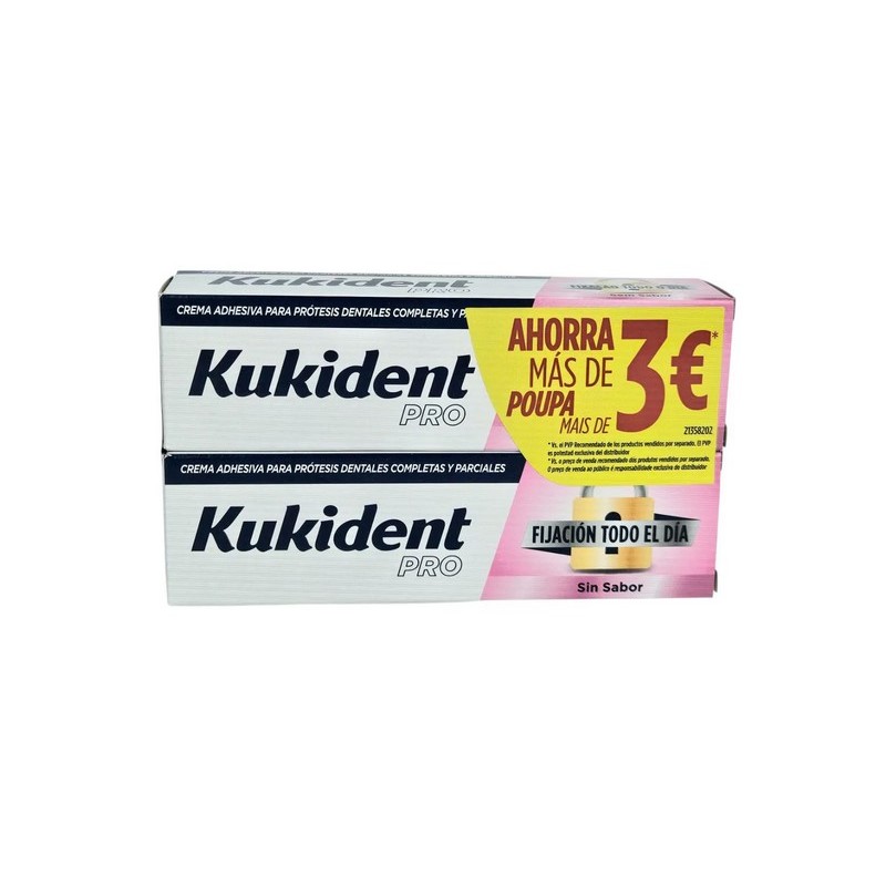 Kukident Fijación Todo el Día Sin Sabor es una crema adhesiva especialmente formulada para ofrecer una fijación fuerte, segura y duradera de las prótesis dentales completas o parciales. Su innovadora composición crea un efecto cojín entre las encías y la dentadura, garantizando confort y estabilidad a lo largo del día. Además, su fórmula sin sabor permite disfrutar de las comidas y bebidas sin alterar el gusto natural, ofreciendo una experiencia cómoda y discreta.