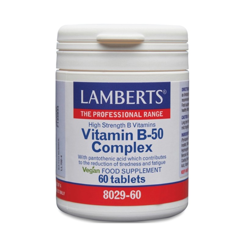 Lamberts Vitamina B-50 Complex contiene una combinación equilibrada de vitaminas del grupo B, entre ellas: