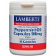 Lamberts Aceite de Menta es un complemento alimenticio digestivo formulado con aceite esencial puro de menta (Mentha piperita), obtenido mediante destilación directa de las hojas de la planta para conservar todos sus principios activos naturales. Cada cápsula aporta 100 mg de aceite de menta altamente concentrado, ofreciendo una potencia superior a la de infusiones o caramelos tradicionales.