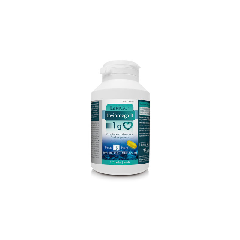 Laviomega-3 1g es un complemento alimenticio en formato perlas diseñado para aportar una cantidad óptima de ácidos grasos poliinsaturados Omega-3, procedentes de aceite de pescado azul de alta calidad.