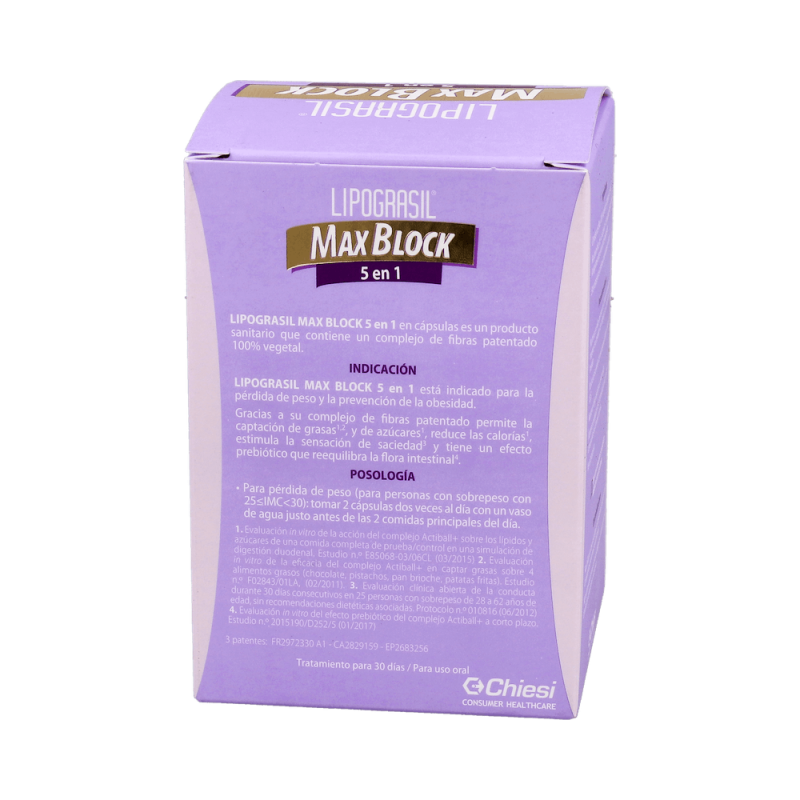 Lipograsil MAX BLOCK 5 en 1 es un producto sanitario innovador y eficaz, diseñado para apoyar la pérdida de peso y prevenir la obesidad de forma segura. Su fórmula actúa de manera integral, ayudando a bloquear grasas y azúcares, mientras controla el apetito, proporcionando una solución completa para quienes desean alcanzar su peso ideal. Recuerda que debe utilizarse como parte de un estilo de vida saludable y no como un sustituto de una dieta equilibrada.
