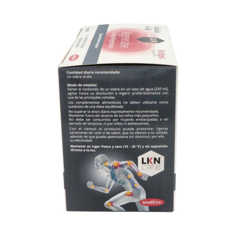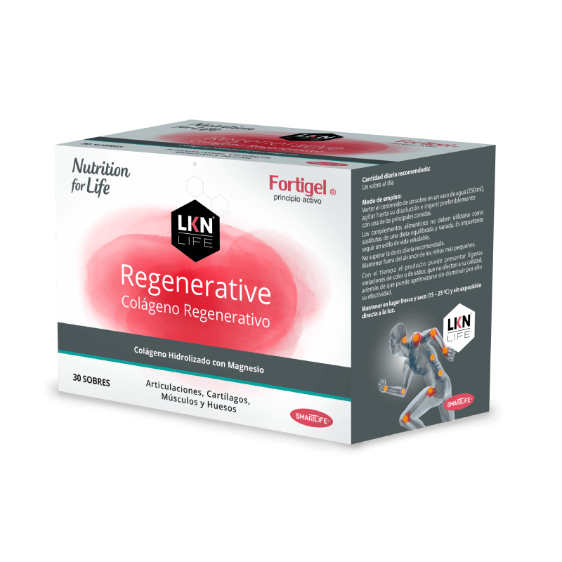LKN LIFE Colágeno Regenerativo Fortigel es un complemento alimenticio con colágeno, magnesio y vitamina C que ayuda a cuidar articulaciones, huesos y músculos, contribuyendo al mantenimiento de la masa muscular y al bienestar diario.