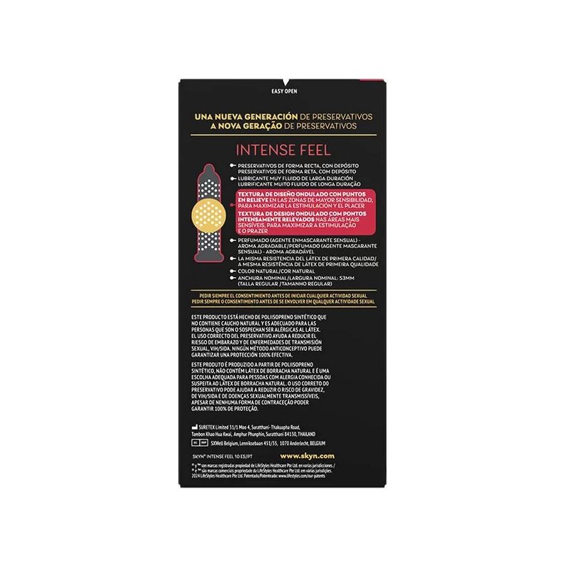 Manix SKYN Intense Feel está indicado para aquellas personas que desean llevar sus experiencias sexuales al siguiente nivel, incrementando la estimulación sin sacrificar la seguridad. Es ideal para parejas que buscan intensificar el placer durante la relación sexual mediante texturas que aumentan la fricción positiva. Además, al estar fabricado sin látex, es perfectamente apto para personas con alergia al látex o sensibilidad a este material. También es una excelente opción para quienes desean experimentar nuevas sensaciones de forma segura, gracias a su diseño anatómico, transparente, liso y lubricado.