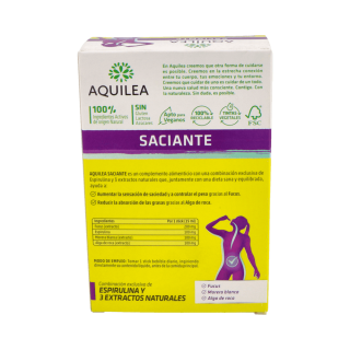 Aquilea Saciante es la opción perfecta para quienes desean controlar su peso de forma natural, segura y eficaz. Su fórmula con espirulina, fucus, morera blanca y alga de roca actúa directamente sobre la sensación de...