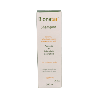 Boderm Bionatar Champú es un producto especializado para el tratamiento del cuero cabelludo y la piel, formulado especialmente para personas que presentan síntomas de psoriasis o dermatitis seborreica. Envase con 200 ml.