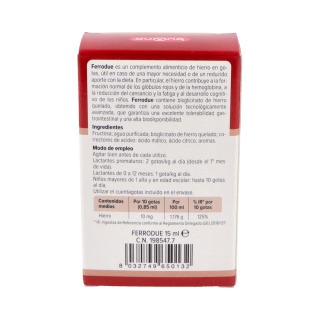 Buona Ferrodue es un suplemento dietético de hierro en gotas, especialmente diseñado para satisfacer necesidades específicas de hierro en casos de mayor requerimiento o ingesta dietética reducida.