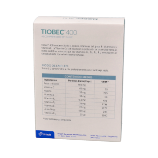 Tiobec 400 es un complemento alimenticio de alta calidad, ideal para quienes necesitan reforzar su organismo frente al cansancio, el estrés oxidativo y el desgaste diario.