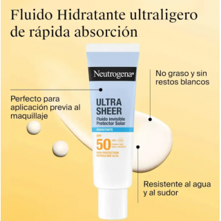 Neutrogena Sun Fluido Invisible Hidratante SPF50 es un protector solar facial SPF50 con textura fluida ultraligera y acabado invisible. Protege frente a los rayos UVA y UVB, ayuda a mantener la hidratación de la piel...