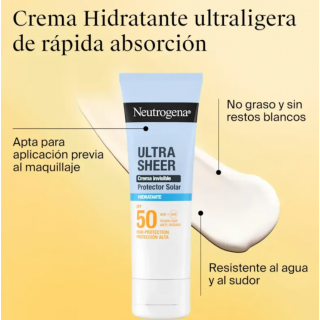 Neutrogena Sun Crema Invisible Hidratante SPF50 es un protector solar facial SPF50 con protección UVA UVB que ayuda a proteger la piel del sol mientras mantiene la hidratación. Su textura ligera con acabado invisible...