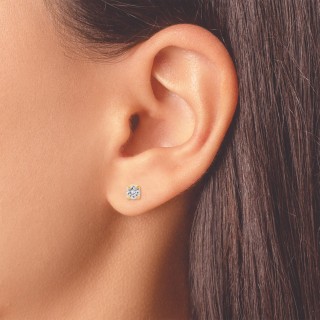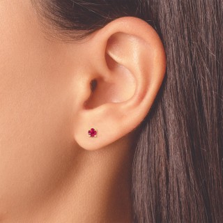 Solitario Cristal Rojo 3 mm chapado en oro 24KT sobre base de acero inoxidable grado médico, respetuoso con la piel.1 unidad.Fabricado en USA.
