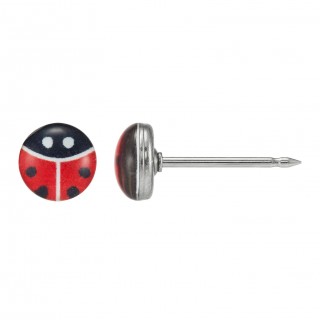 Pendiente Lady Bug en Acero inoxidable grado médico, muy resistente a la corrosión, antialérgicos y cuidadosos con la piel. 1 unidad. Fabricado en USA.