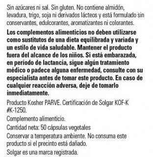 Todos los productos Solgar® cumplen los más estrictos criterios de excelencia del sector. Elaborados a partir de ingredientes naturales e innovando desde 1947, Solgar® es el Complemento Alimenticio recomendado.